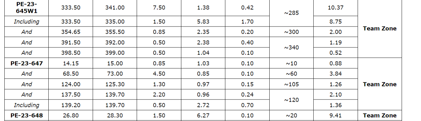 Dr. Jacques Trottier, PhD, executive chairman of Amex Exploration, commented: "I am pleased to see continued high-grade mineralization from the Team zone. Our drilling is focused on defining and expanding this important newly discovered zone. The mineralization starts at surface and may be suitable for open-pit extraction.