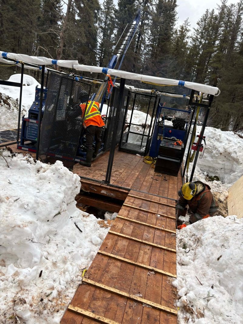 Figure 3: Image of the Fusion Drilling team on their set up for the first drill hole at Perron West.