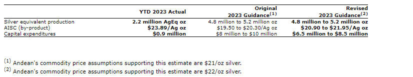 The attached table sets out Andean's year-to-date results against both its original and revised 2023 guidance.