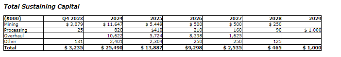 The capital costs are sustaining costs to rebuild and replace equipment and to replace the Merrill Crowe plant with a carbon adsorption circuit at closure.