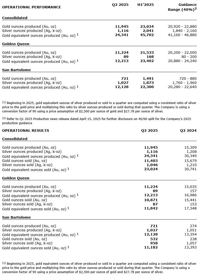 Alberto Morales, executive chairman and chief executive officer, stated: "Our second quarter gold equivalent production of 24,341 ounces brings the company to 45,702 gold equivalent ounces for the first half of the year. As expected, production improved over Q1, and the company is trending at the top end of our guidance considering the weighted production profile of approximately 40 per cent in the first half and 60 per cent in the second half of the year. We anticipate further ramp-up at both operations in the second half, consistent with our mine plans. Andean remains well positioned to deliver on its 2025 production targets."