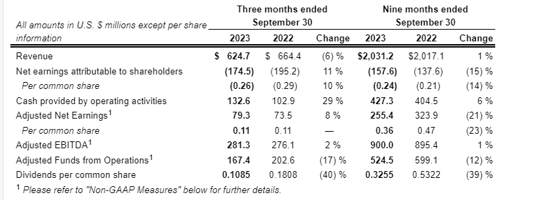 Algonquin Power & Utilities Corp. has released financial results for the third quarter ended Sept. 30, 2023. All amounts are shown in United States dollars, unless otherwise noted.