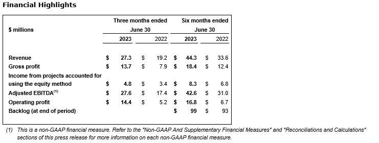 - Reported backlog at June 30, 2023, of $6,851-million, compared with backlog of $6,605-million at June 30, 2022. New contract awards of $2,016-million were booked in the second quarter of 2023, compared with $1,305-million during the same period in 2022;