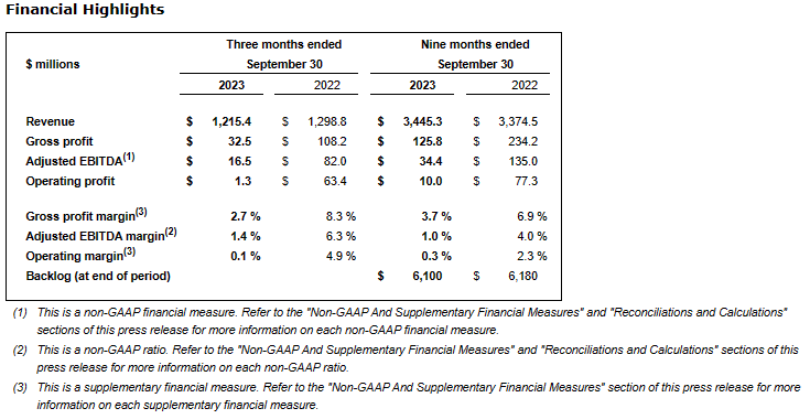 Aecon Group Inc. has released results for the third quarter of 2023.
