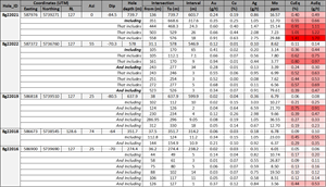 Summary table for drill holes for this news release is shown below