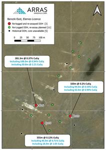 VANCOUVER, British Columbia, Jan. 22, 2024 (GLOBE NEWSWIRE) -- Arras Minerals Corp. (TSX-V: ARK) (“Arras” or “the Company”) is pleased to announce the results from the re-analysis of samples from three historic diamond drill holes from the Berezski East project (“Berezski East” or the “Project”) located within the Company’s Elemes exploration licence (“Elemes” or the “Licence”) in northeastern Kazakhstan. The Elemes licence is not included in the Teck-Arras Strategic Exploration Alliance announced on December 7, 2023.
