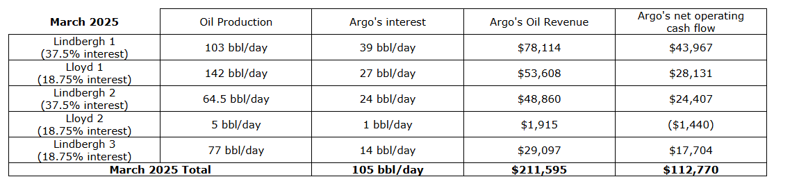 ARGO'S MARCH 2025 OIL PRODUCTION