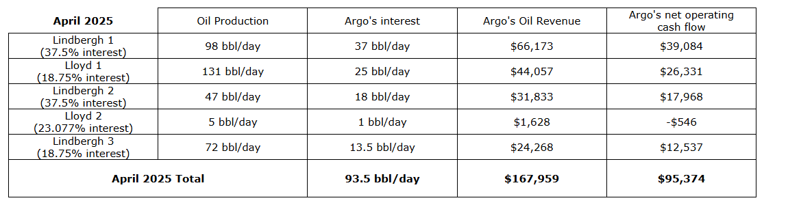 ARGO'S APRIL 2025 OIL PRODUCTION