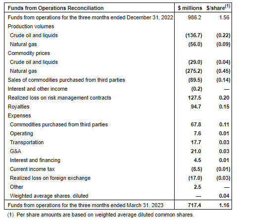 The attached table details the change in funds from operations for the first quarter of 2023 relative to the fourth quarter of 2022.