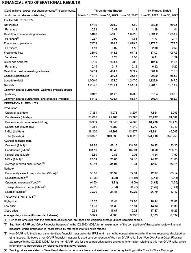 ARC RESOURCES LTD. REPORTS SECOND QUARTER 2023 RESULTS