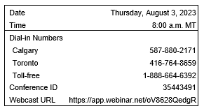 Second quarter 2023 funds from operations were $561-million ($0.92 per share), representing a decrease of $157-million from the first quarter of 2023. This decrease was driven by lower commodity prices. Partially offsetting lower commodity prices were slightly higher production volumes and lower realized losses on risk management contracts. Second quarter risk management losses of $9-million decreased $141-million from the first quarter of 2023.