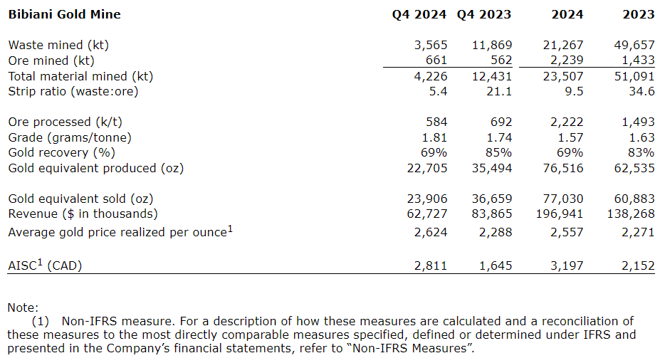 Bibiani mine -- summary of Q4 and FY 2024 results
