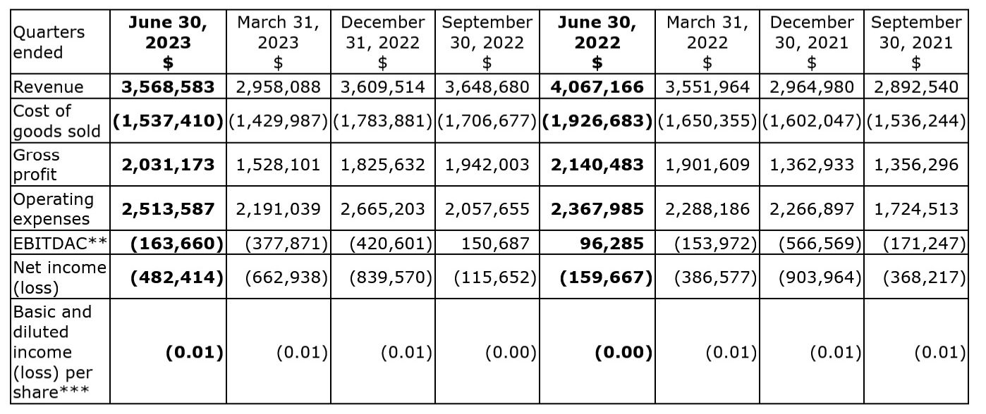Full financial statements can be found on SEDAR+ at (www.sedarplus.ca).
