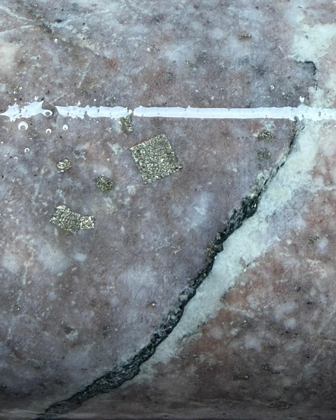 Figure 2: Hydrothermal Pyrite and Quartz Stringers in Feldspar Porphyry