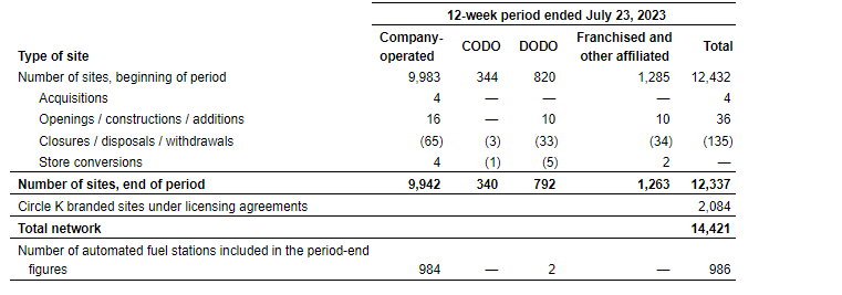 The attached table presents certain information regarding changes in the company's store network over the 12-week period ended July 23, 2023.