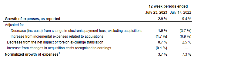 For the first quarter of fiscal 2024, expenses increased by 2.9 per cent compared with the corresponding period of fiscal 2023, while normalized growth of expenses was 3.7 per cent, as shown in the attached table.
