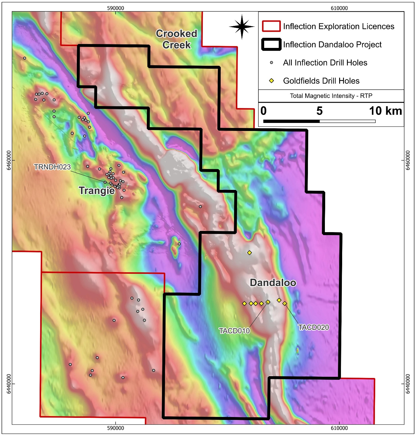The magnetic signature at Dandaloo has some similarities to the zone of magnetite enrichment at Trangie, where Inflection's drilling is defining a gold-copper porphyry system.