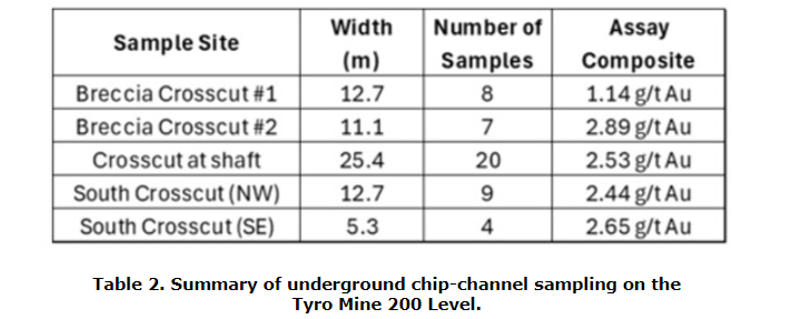 - To generate a potential maiden resource at the Tyro Main zone, additional core and reverse circulation (RC) drilling is proposed along with mechanized sampling of surface vein exposures.
