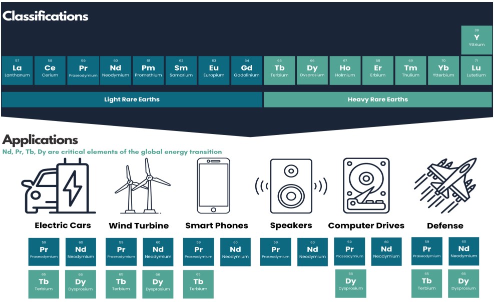 Figure 1: Uses of Light and Heavy Rare Earth Elements (REEs)