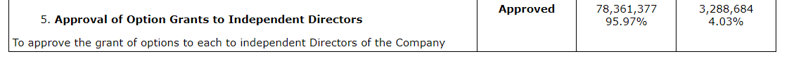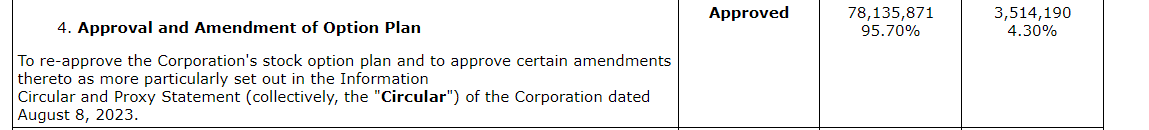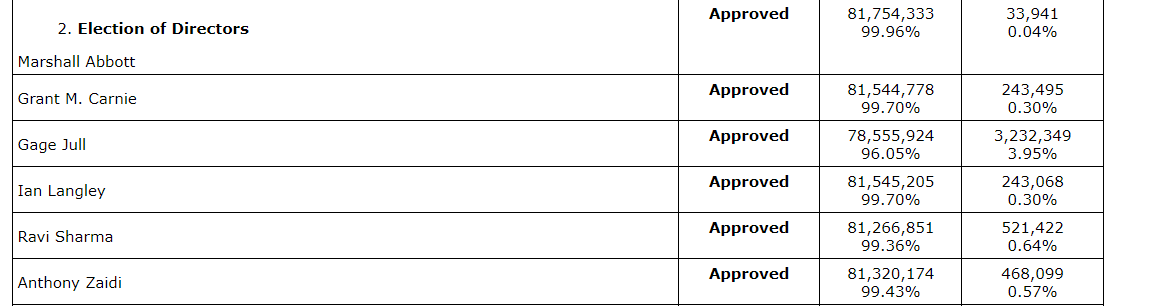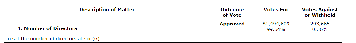 Report in respect of voting results pursuant to Section 11.3 of National Instrument 51-102 -- Continuous Disclosure Obligations