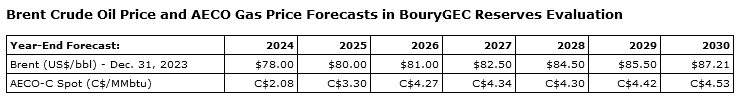 - Before tax NPV-10 values have increased 133 per cent for 1P and 120 per cent for 2P, over year-end 2022, due to reserves growth and notwithstanding decreases in the oil price forecast used by BouryGEC at year-end 2023.