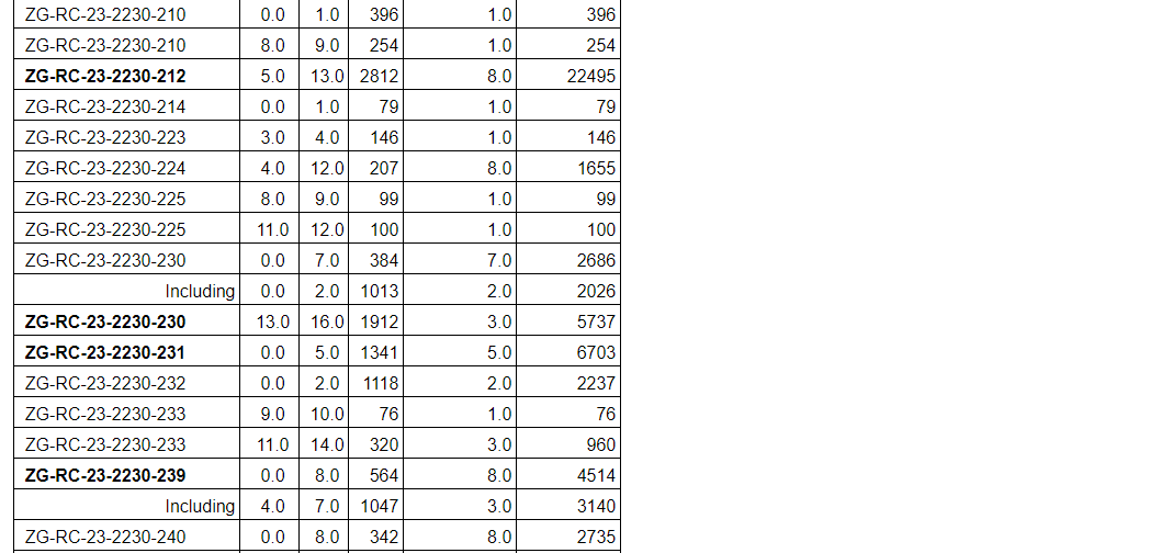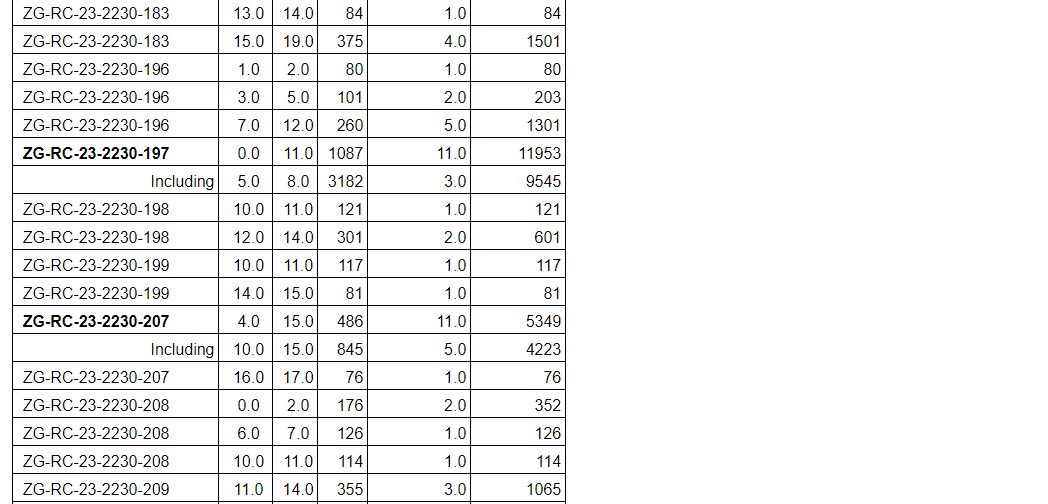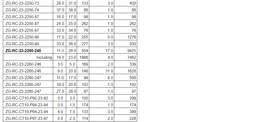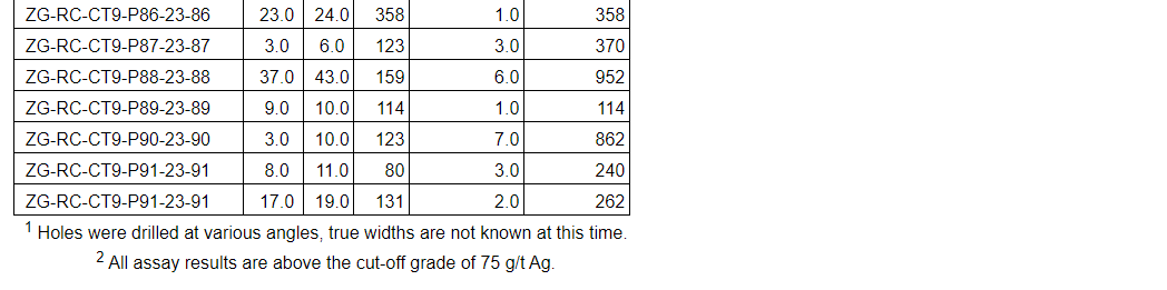 In the open-pit area to the east, reverse circulation (RC) drill hole ZG-RC-23-2230-212 intercepted 2,812 g/t Ag over eight m, and ZG-RC-CT7-P63-23-63 intercepted 2,227 g/t Ag over 7.0 m, including 6,768 g/t Ag over 2.0 m.