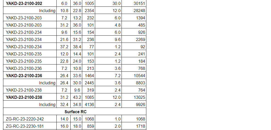 "Today's high-grade drill results, including hole ZG-RC-23-2230-212 near the open-pit area to the east, continue to demonstrate continuity of mineralization from surface and at depth over the larger footprint of the deposit," said Benoit La Salle, president and chief executive officer. "We are also very encouraged by the YAKD-23-2100-202 result through definition drilling and expect more significant intercepts in the coming months as we accelerate underground drilling at Zgounder."