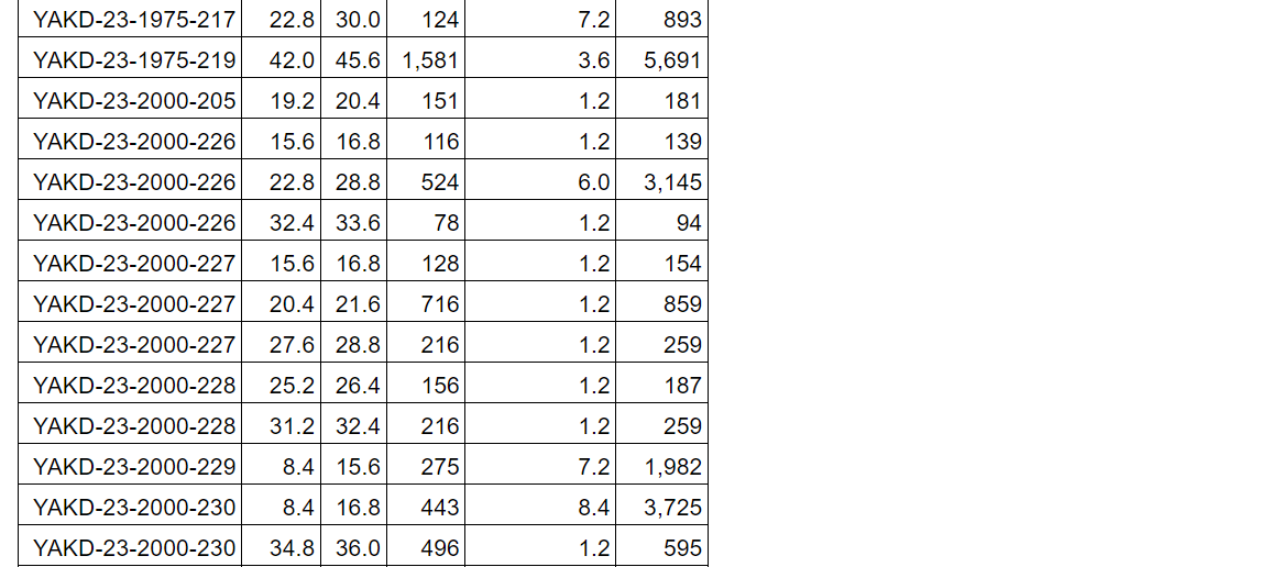 Included in this release are results for 209 holes, which include four underground diamond drill holes, 52 RC drill holes from pit definition drilling, 122 T28 holes and 31 YAK holes (T28 and YAK -- percussion drilling using an air-compressed hammer). For a full summary of today's results, refer to an attached table.