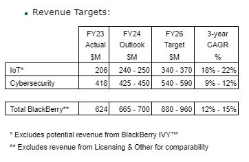• BlackBerry is targeting additional Ivy design wins in fiscal 2024.