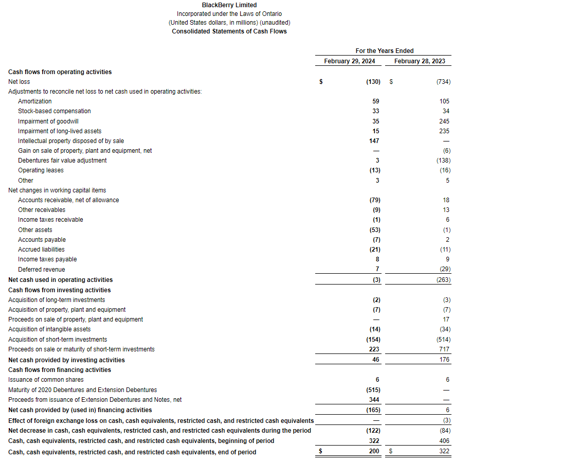 BlackBerry Ltd. has released its financial results for the three months and fiscal year ended Feb. 29, 2024 (all figures in United States dollars and U.S. GAAP (generally accepted accounting principles), except where otherwise indicated).