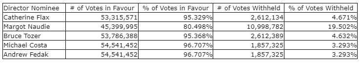 For more information, refer to the management information circular dated July 7, 2023, available on the company's profile on SEDAR+.