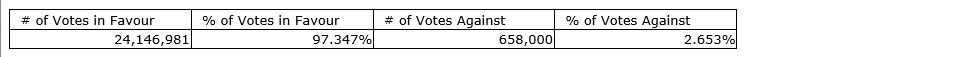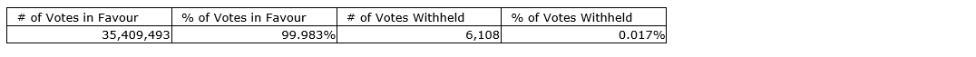 Certain shareholders, being related persons that would receive, or would be eligible to receive, a material benefit from the extension of the options and the votes attached to the shares they own were excluded from voting (whether by proxy or otherwise) on the extension of these options.