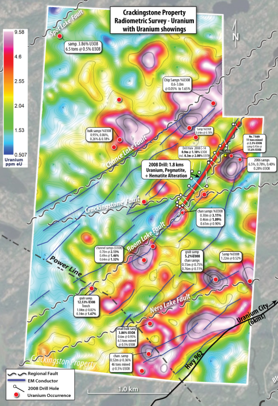 Since the original 2008 program, there have been major advancements in geological understanding of the Beaverlodge Domain as well as significant improvements in analytical methods for identifying and characterizing uranium and rare earth element (REE) mineralization. During the 2008 program, only limited intervals showing visible uranium were submitted for U₃O₈ analysis.