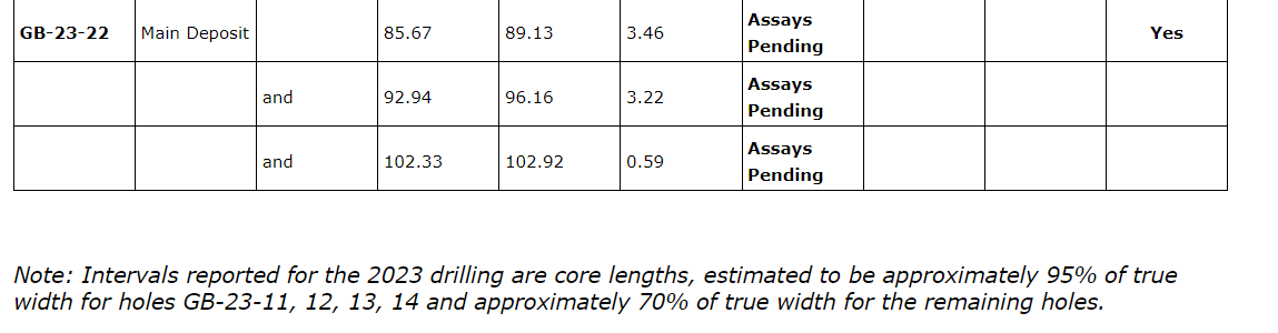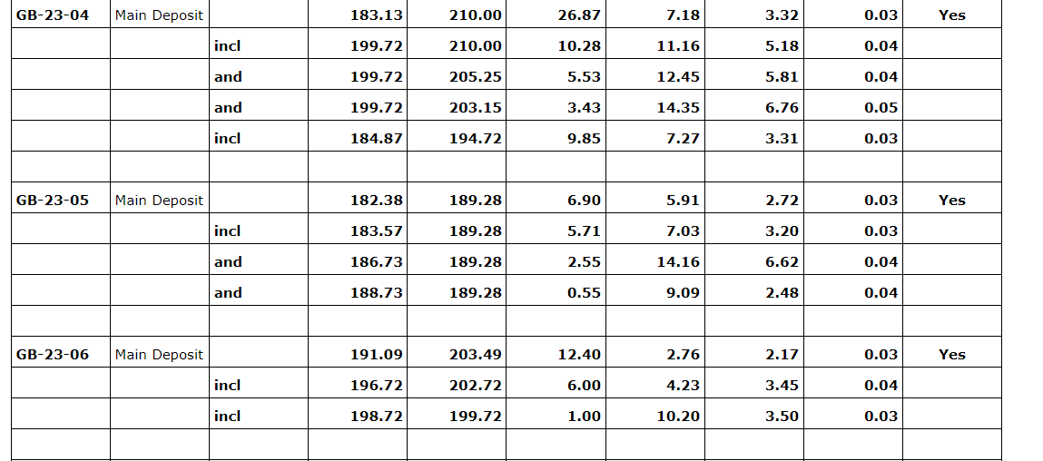 Highlights of these holes include drill hole GB-23-07, which intersected 12.3 metres grading 7.2 per cent copper, 7.12 grams per tonne silver and 0.05 per cent cobalt. The company remains extremely encouraged by the continued success in drilling and looks forward to compiling and releasing further results once received. Benton is now in the process of planning its winter exploration program at Great Burnt to expand the deposit down dip and down plunge, where it remains open.