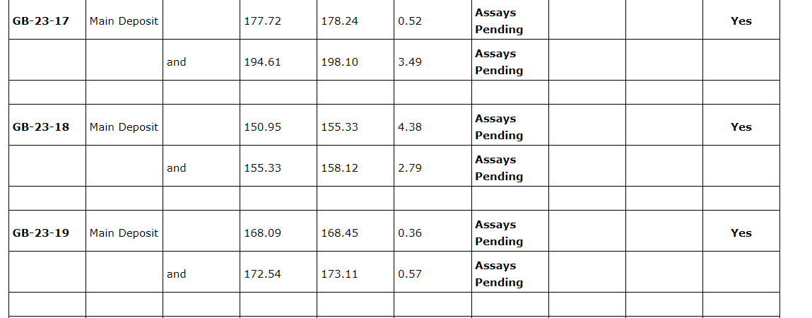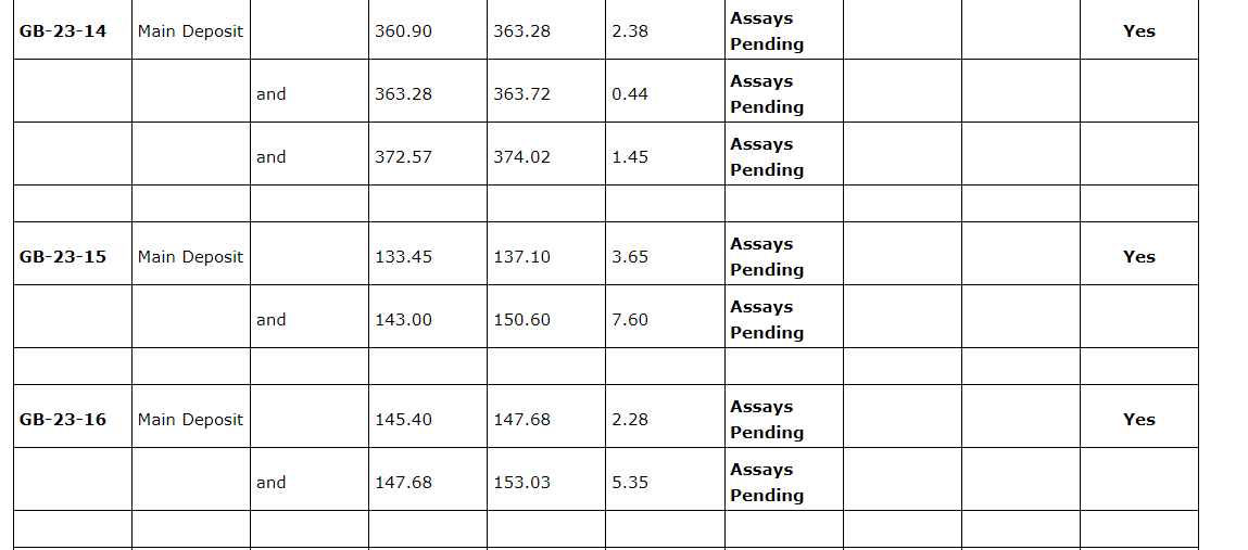 In addition to drilling, prospecting and soil geochemical sampling have also concluded to the north of the main Great Burnt deposit. Samples have been submitted for analysis and will be reported upon receipt. Extensive compilation of historical data is progressing.