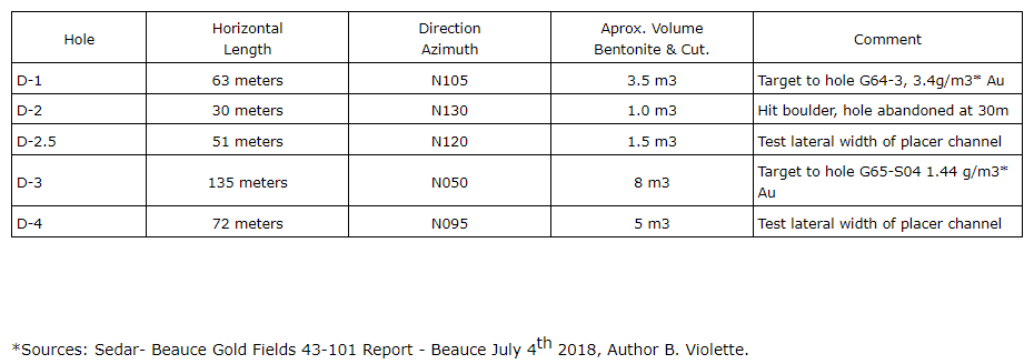 Beauce Gold Fields Inc. has tested the use of a modified horizontal directional drilling method to drill lengths of the auriferous till units of the paleoplacer channel on the Beauce gold property located in St-Simon-les-Mines, Que.