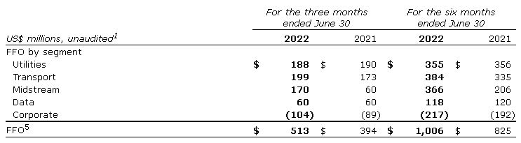 The mid-stream segment generated $161-million of FFO, a modest decrease compared with the prior year. Strong performance across the partnership's base businesses from increased utilization and higher contracted cash flows was offset by softer results at the partnership's Canadian diversified mid-stream business due to the normalization of market-sensitive revenues and the delay in a meaningful contribution from the Heartland Petrochemical Complex (HPC), which was off-line for much of the quarter. Looking ahead, HPC is anticipated to partially contribute to results in the third quarter, while the fourth quarter is expected to provide full run-rate contribution.