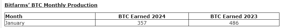 BITFARMS EARNS 357 BTC IN JANUARY 2024