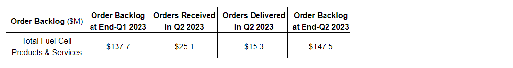 "We are making important progress on our strategic priorities, as communicated at our 2023 capital markets day. During Q2, we grew our order book, invested in next-generation fuel cell products, and continued to drive our product cost reduction programs," said Randy MacEwen, president and chief executive officer. "We continue to see growing customer interest across our market verticals, which is reflected in $25.1-million of new orders in Q2 and a growing sales pipeline. Importantly, our power products backlog is now up over 140 per cent compared to the prior-year period. We are particularly excited by the growing customer engagement levels in the U.S. and European markets.