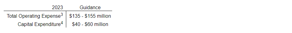 In 2023, the company maintains its guidance ranges for total operating expense and capital expenditure (see an attached table).