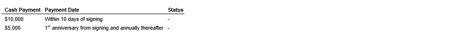 Antelope Creek has signed a 40-year lease with option to purchase for six federal mining claims with a private vendor by making cash payments in accordance with the schedule detailed in the attached table.