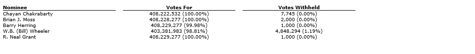 On a vote by ballot, each of the five nominees proposed by management was elected as a director of Bengal and the detailed results of such ballot vote are provided in the attached table.