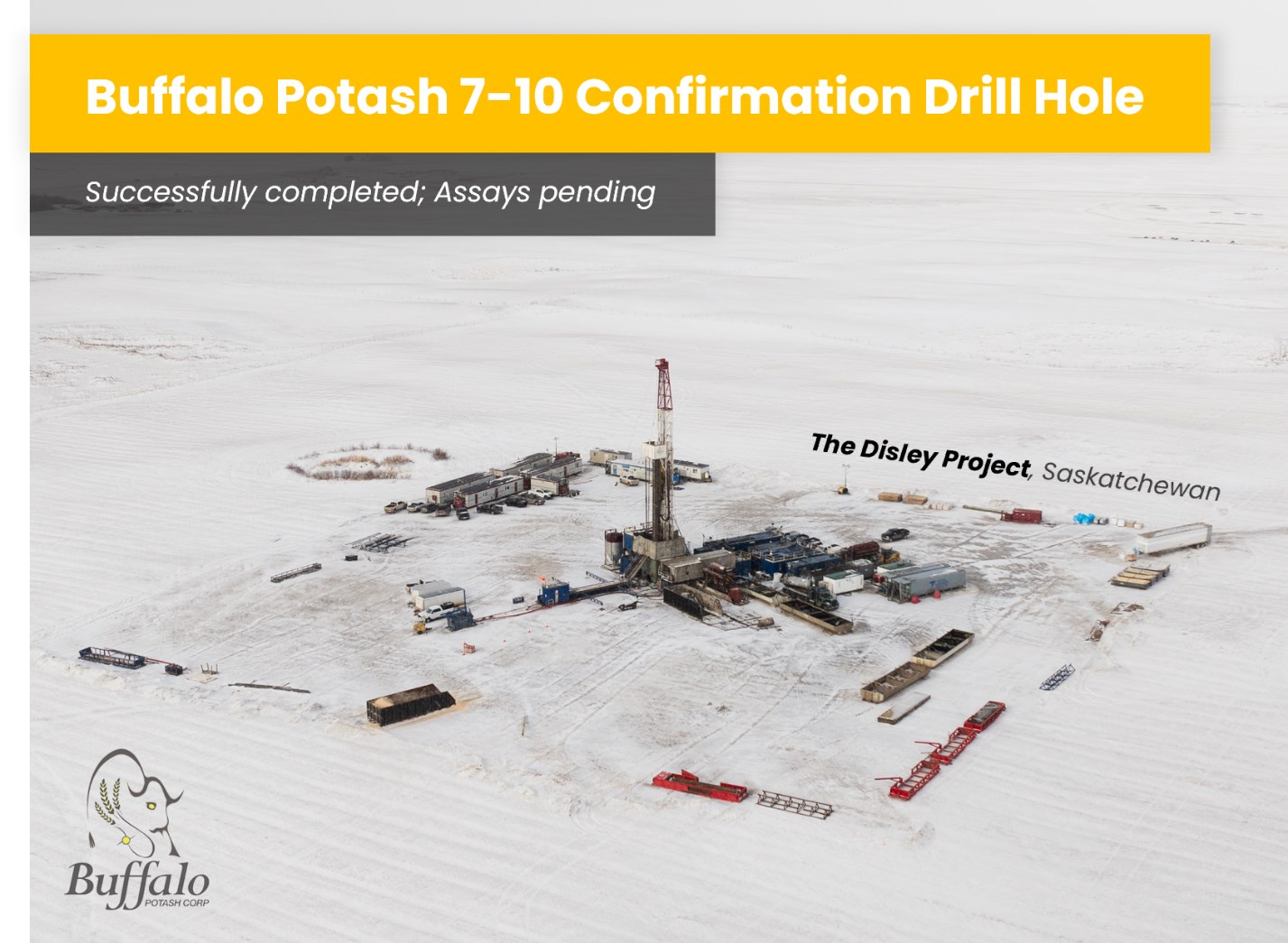 The Company has initiated assay analysis on the Legacy Drill Cores from each of the Lumsden Pilot Project and the Imperial Oil Exploration Hole. Sampling and assay procedures are being undertaken by the Saskatchewan Research Council and will be consistent with the modern procedures being undertaken for Buffalo's 7-10 Hole (as defined below). The assay results from these Legacy Drill Cores will contribute to an integrated geological and geophysical potash geoscience model (the "Potash Geoscience Model") for the Disley Project and furthermore, will help the Company advance its understanding of the Disley Project with a view towards preparation of an updated NI 43-101-compliant Technical Report and PEA(1).