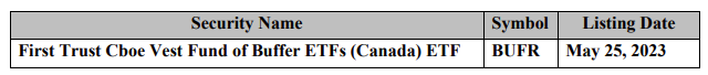 Security name: First Trust Cboe Vest Fund of Buffer ETFs (Canada) ETF