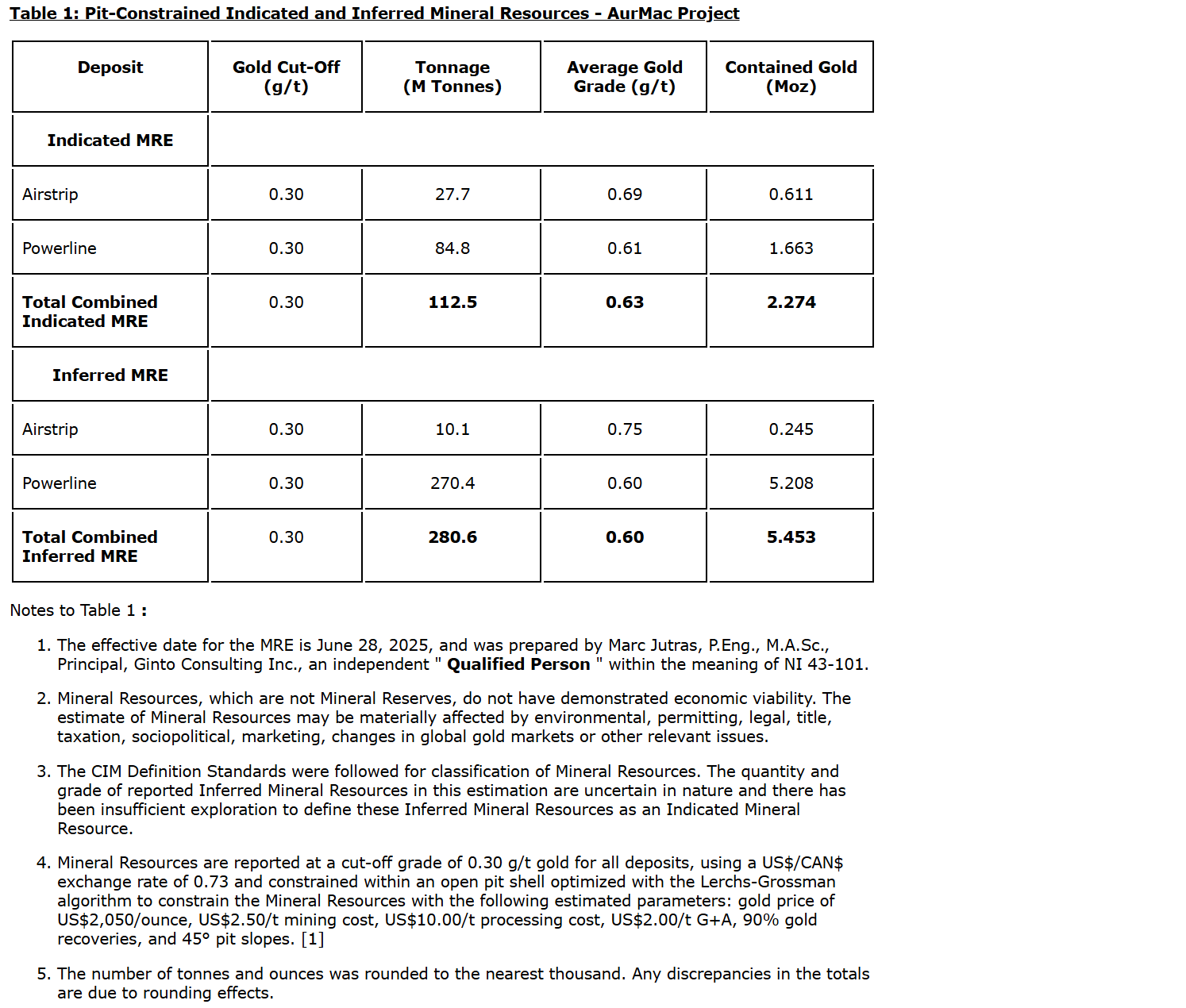 In addition to the AurMac project, the company holds the Hyland gold project, located 70 km northeast of Watson Lake, Yukon, along the southeast end of the Tintina gold belt in the traditional territory of the Kaska Nations, closest to the Liard First Nation and Daylu Dena Council. The Hyland project represents a sediment-hosted, structurally controlled, intrusion-related gold deposit, within a large land package (over 125 square km), accessible by a network of existing gravel access roads. The updated MRE comprises an indicated mineral resource of 337,000 ounces of gold and 2.63 million oz of silver (Ag) (11.3 M tonnes of ore at 0.93 g/t Au and 7.27 g/t Ag), and an inferred mineral resource of 118,000 oz of Au and 0.86 Moz Ag (3.9 M tonnes of ore at 0.95 g/t Au and 6.94 g/t Ag) (as defined in the Canadian Institute of Mining, Metallurgy and Petroleum Definition Standards for Mineral Resources & Mineral Reserves incorporated by reference into NI 43-101) effective Sept. 1, 2025, and with technical report filed on SEDAR+ on Oct. 27, 2025.