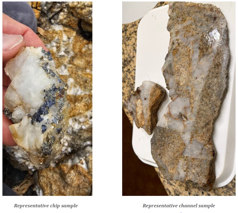 Representative chip and channel samples containing copper and molybdenum mineralization from the Maher Breccia.
