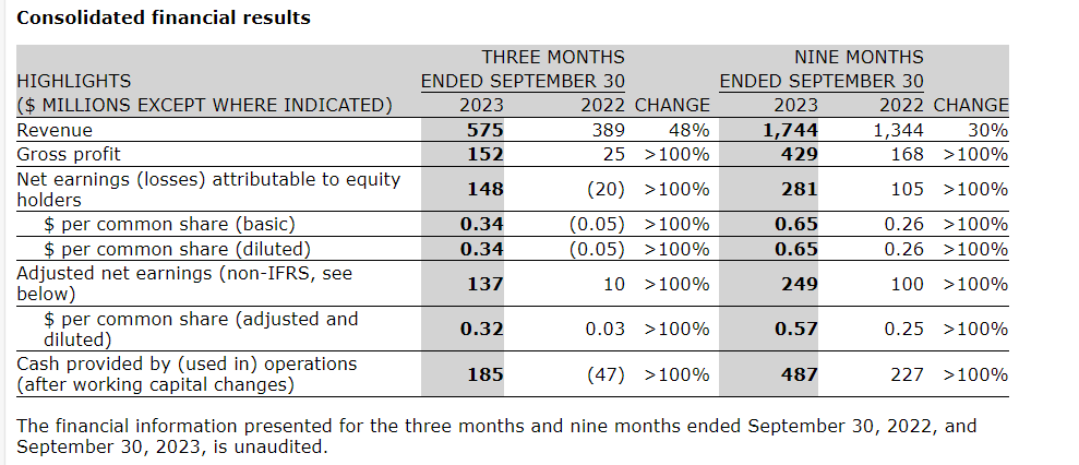 Cameco Corp. has released its consolidated financial and operating results for the third quarter ended Sept. 30, 2023, in accordance with international financial reporting standards (IFRS).