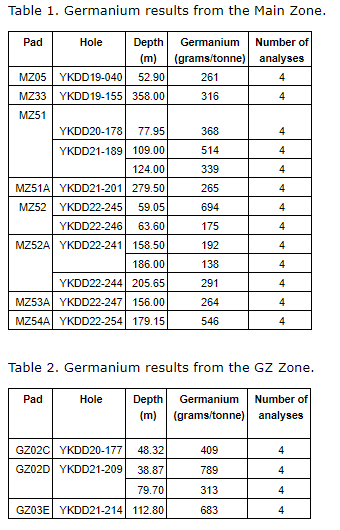 Cantex is fortunate to have identified highly elevated germanium contents within the zinc mineralization found at its massive sulphide project in North Rackla. While the four deposits which comprise the Red Dog mine average between 104 and 249 grams per tonne germanium, zinc mineralization from Cantex's Main zone and adjacent GZ zone averages 640 grams per tonne and 690 grams per tonne, respectively.