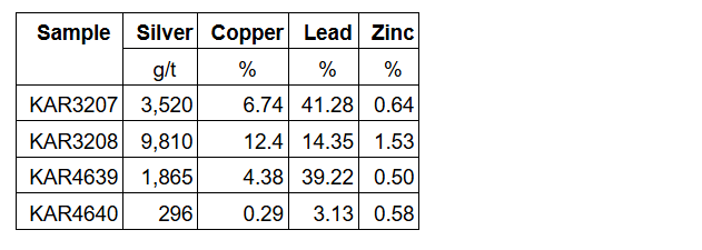 ALS Chemex in Vancouver analyzed the samples using a four-acid digestion with an ICP-MS finish. The 48-element ME-MS61 technique was used to provide a geochemical signature of the mineralization. Where lead, zinc or copper values exceeded 1 per cent the Pb-OG62, Zn-OG62 or Cu-OG62 techniques were used. These have upper limits of 20 per cent lead, 30 per cent zinc and 50 per cent copper, respectively. Samples with lead and zinc values over these limits were then analyzed by titration methods Pb-VOL70 and Zn-VOL50. Where silver samples exceeded 100 g/t the Ag-OG62 technique was used which has an upper limit of 1,500 g/t. Where silver values exceeded 1,500 g/t the Ag-GRA22 technique was used.