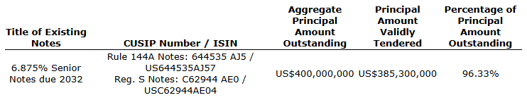 The exchange offer and consent solicitation are being made pursuant to the terms and subject to the conditions set forth in the exchange offer memorandum and consent solicitation statement dated March 23, 2026. Withdrawal rights expired at 5 p.m. New York time on April 3, 2026, and have not been extended. Existing notes validly tendered, and consents validly submitted, may no longer be withdrawn or revoked, except as required by applicable law.